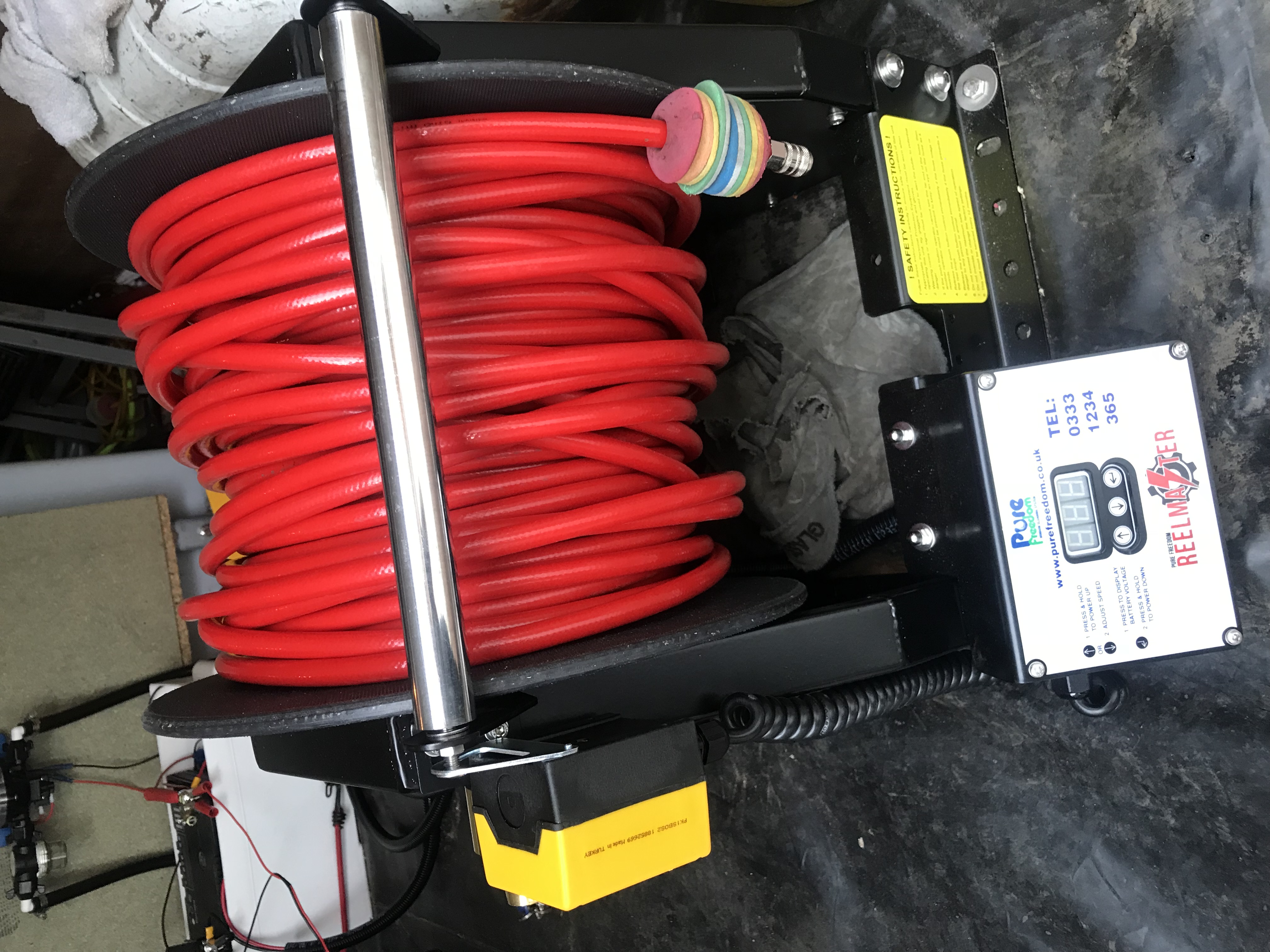 they are fitting metal side discs to the reel to stop warping(due to the hot water).this should be standard on a reel of this quality and price IMO anyway....