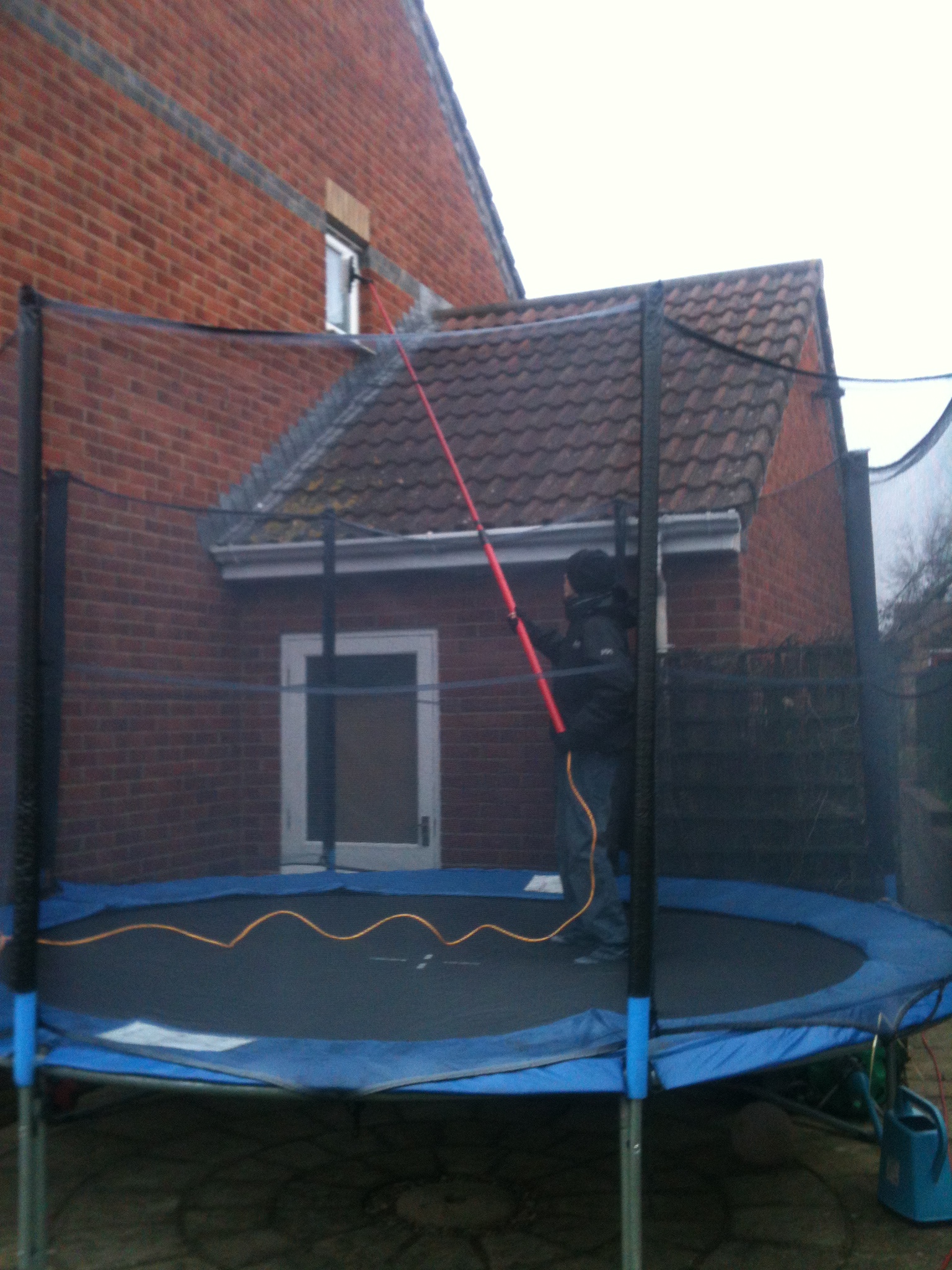 you could of still cleaned that window from the side of the trampoline with a full carbon pole with gooseneck!