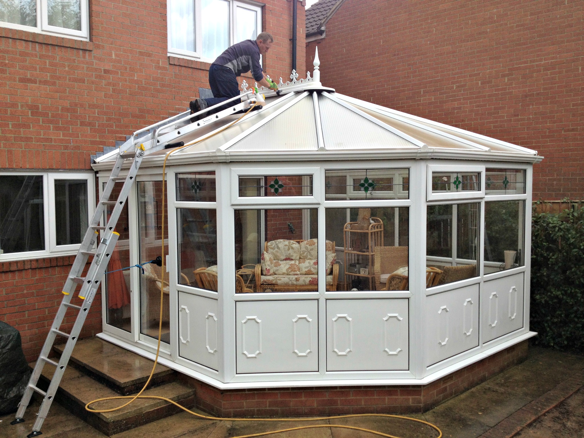 Mike , the crestings & finials on conservatories are what stand out on the roof , these ladders save us time and effort  getting the roofs spotless