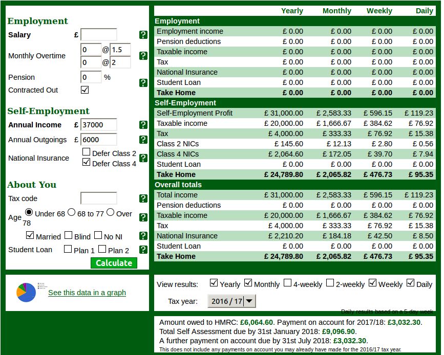 My costs are typically around 6k a year, no sick pay, no holiday pay plus outgoings for sickness insurance, money aside for the next van, etc. If I only turned over £37000 then I'd just as well be employed for £27000 given the right job.