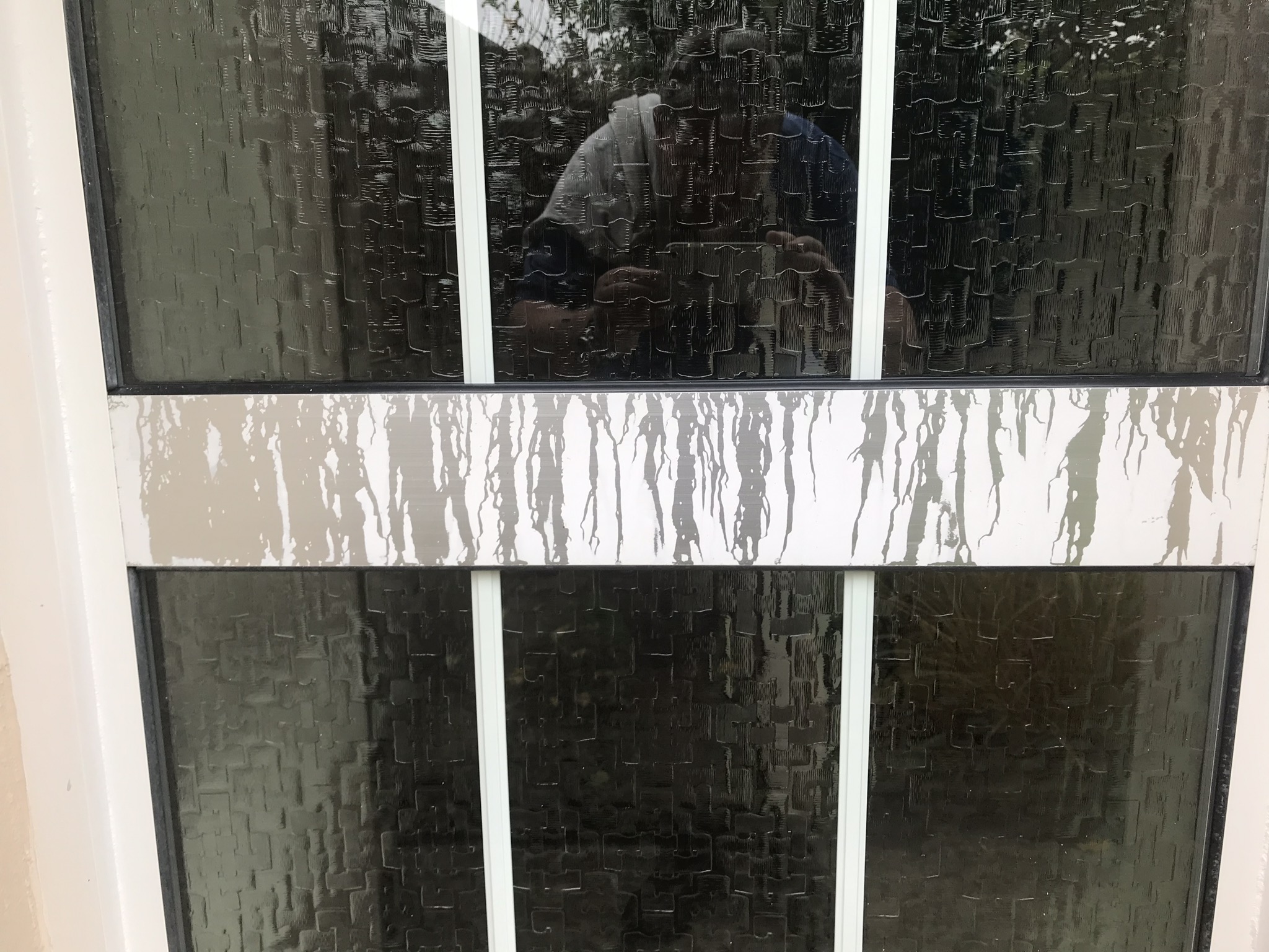 A bit of an update on the markings on the front door in this OP we were carrying out some of our regular domestic work this week and whilst cleaning a composite front door I noticed the same markings I found on the red door and presumed was caused by the hypo we used to clean the surrounding render.  The door pictured has never had any hypo used on it or anywhere on the house it belongs to and I'm now thinking it's not the hypo which caused the markings but the base colour showing through the top coating of the front doors.